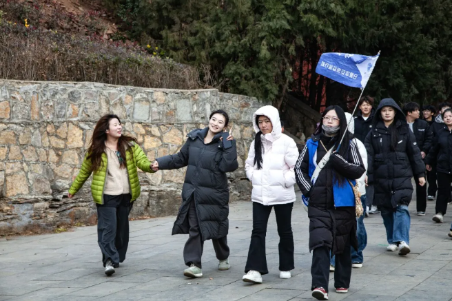 学生们走进溶洞内,洞内洞外的温差,让他们不禁感叹着“地下气候”的神奇与生动。在静谧的环境下,学生们聆听着地下滴水的声音,仿若听到了大地的心跳,而双手划过岩壁的粗糙质感,更让他们感到仿若亲身经历岁月的地质变迁。
