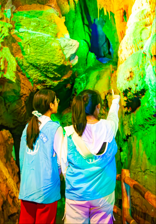 当孩子们怀揣着好奇与期待,踏入地下大峡谷洞内的那一刻,便仿佛置身于一个奇幻的时空隧道。景区工作人员化身"地质导游",带着孩子们开启了一场别开生面的地质科普之旅。