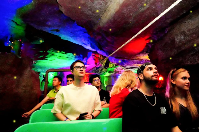 2025年,在央视镜头下,地下大峡谷 “地心探秘”沉浸式游乐项目,成为当下热门话题。景区以一场跨越亿年的 “地心奇旅”,为端午节这一传统节日注入科技与自然碰撞的新活力。数字光影重塑下的远古时代,热浪翻滚的岩浆、丰富有趣的科普知识,都在这充满魅力的18℃溶洞里与游客相遇。而这并不是对自然的覆盖,而是一场 “深层对话”——科技,成了通往地心的幽径。