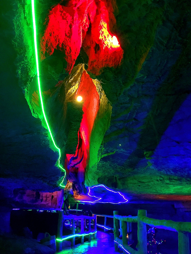 界,等我们的眼睛逐渐适应黑暗之时,神奇突然出现:成千上万的萤火虫,象无数闪烁的星光在穹顶间闪烁,象银河一般,熠熠生辉,犹如进入一个童话世界。