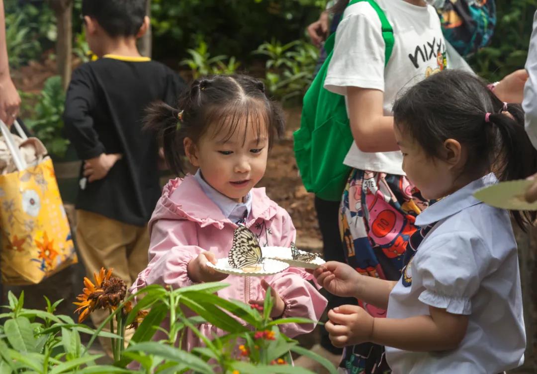 蝴蝶谷内,花开似锦,蝴蝶翩迁,家长与孩子们一同赏花、玩水、逗蝴蝶,着实不亦乐乎。