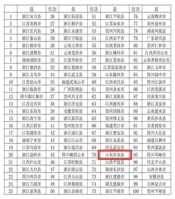 沂水入围2021年全国县域旅游综合实力百强县